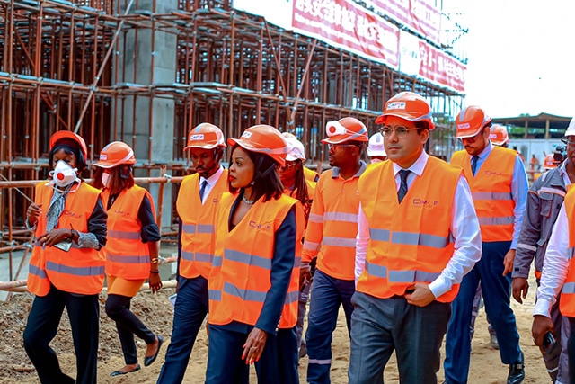 La délégation était conduite par Madame le Ministre du Commerce, des PME-PMI et de l’Entrepreneuriat, Gninga Chaning Zenaba, qui a pu constater de visu l’état d’avancement des travaux de la troisième ligne de production.