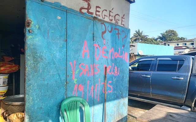 Une vue des maisons marquées “à démolir sans délai”, le jeudi 20 novembre 2025 Libreville. © GabonReview