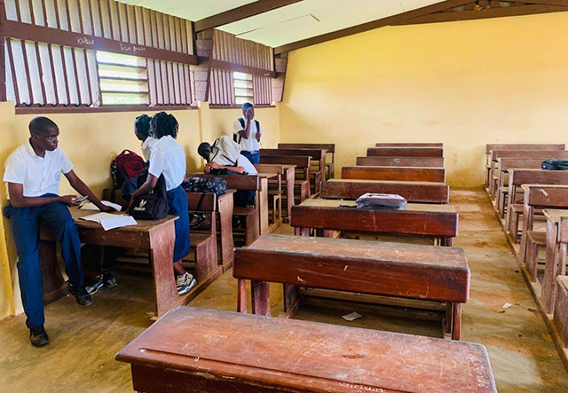 Vue d’une salle de classe, dans la ville de Lébamba, désertée par les enseignants. © D.R.