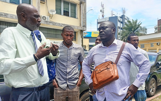 Le représentant des ASS (sac en bandoulière) et ses collègues en pleine discussion. © GabonReview