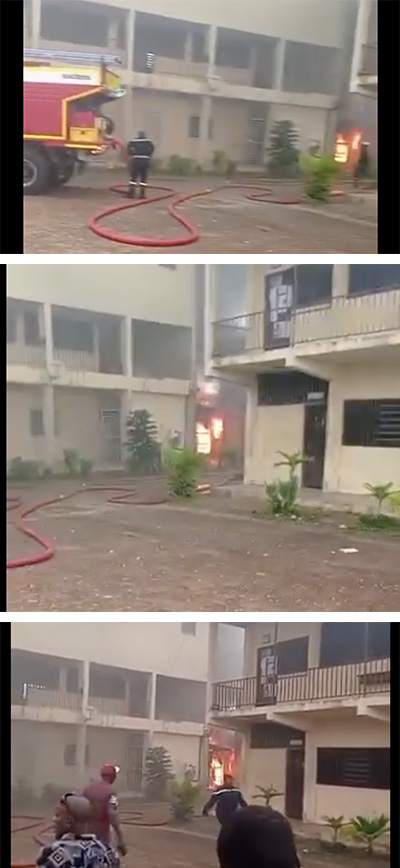 Des images de l’incendie au lycée Georges Mabignath. © Capture d’écran / Facebook