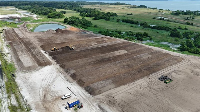 Vue aérienne d’une partie de Batanga dans l’Ogooué-Maritime. Ici, à la surface, 2,45 milliards de francs CFA et des années de patience sont en train de rendre à la terre gabonaise ce qu’on lui avait pris. © POGG