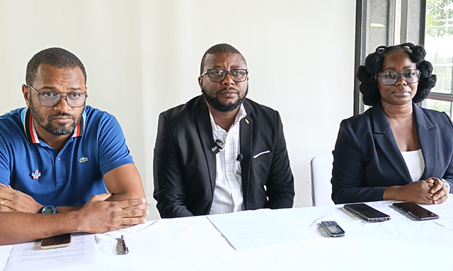 Cédric Tchissambou (au milieu) lors du point de presse, le 15 novembre 2025, à Port-Gentil. © GabonReview