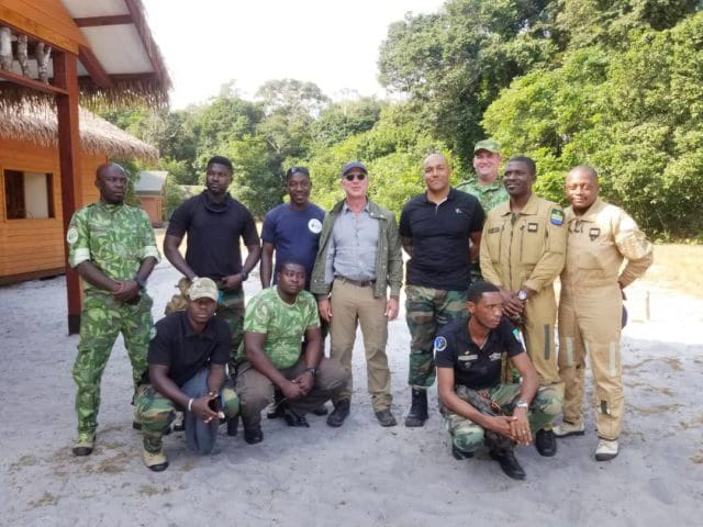 Le milliardaire américain Jeff Bezos (au milieu), fondateur d’Amazon et du Bezos Earth Fund, lors d’une visite en 2022 au Gabon. © D.R.