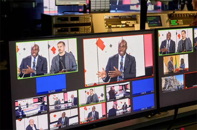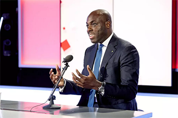 Mark-Alexandre Doumba, ministre de l’Economie numérique, sur le plateau de RFI. © Bruno LEVY pour Jeune Afrique