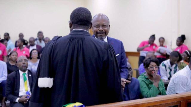 Le président d’EPG, Alain-Claude Bilie-By-Nze, lors de l’audience au Tribunal de première instance de Libreville, le 12 mars 2026. © D.R.