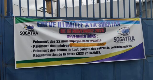 Sur une banderole accrochée au portail principal du siège de la société, ils réclament notamment le paiement de 22 mois de primes Covid-19, le règlement des arriérés de salaires, ainsi que le versement des soldes de tout compte pour les retraités et démissionnaires. Les syndicats de la Sogatra ont récemment lancé une énième grève à Libreville. Ils exigent également la régularisation des dettes envers la CNSS et la CNAMGS, deux institutions sociales dont les créances menacent la couverture des agents.