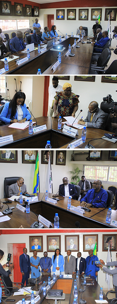 Instantanés de la signature de la convention entre l’UOB et l’Agadev. © GabonReview